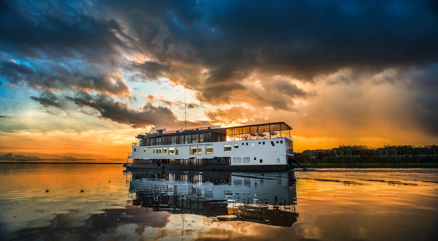 - Flight to Iquitos and embarkation on a luxury Amazon River cruise aboard the Zafiro.