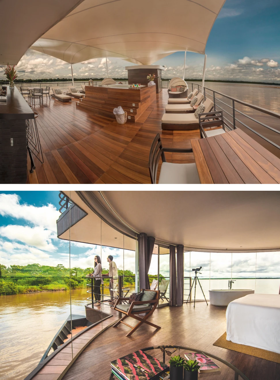 Before dinner, you can enjoy live music by the band on board, which will play a varied repertoire of Amazonian, national, and international music.
